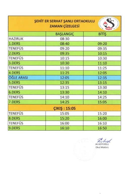 2025-2026 Eğitim Öğretim Yılı Zaman Çizelgemiz